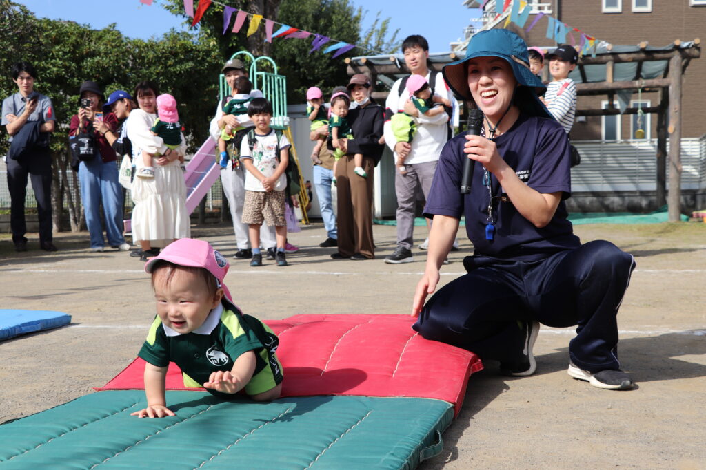 1歳児:ゴールで待つお父さん、お母さん目指してかけっこ・サーキット。全身を使って