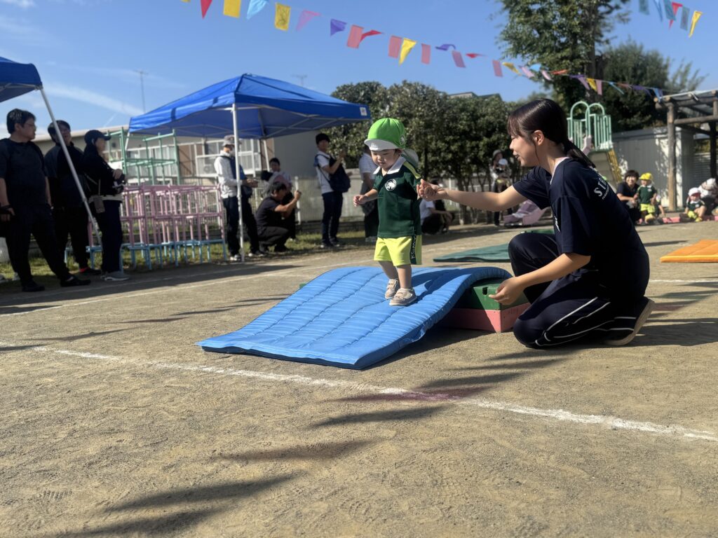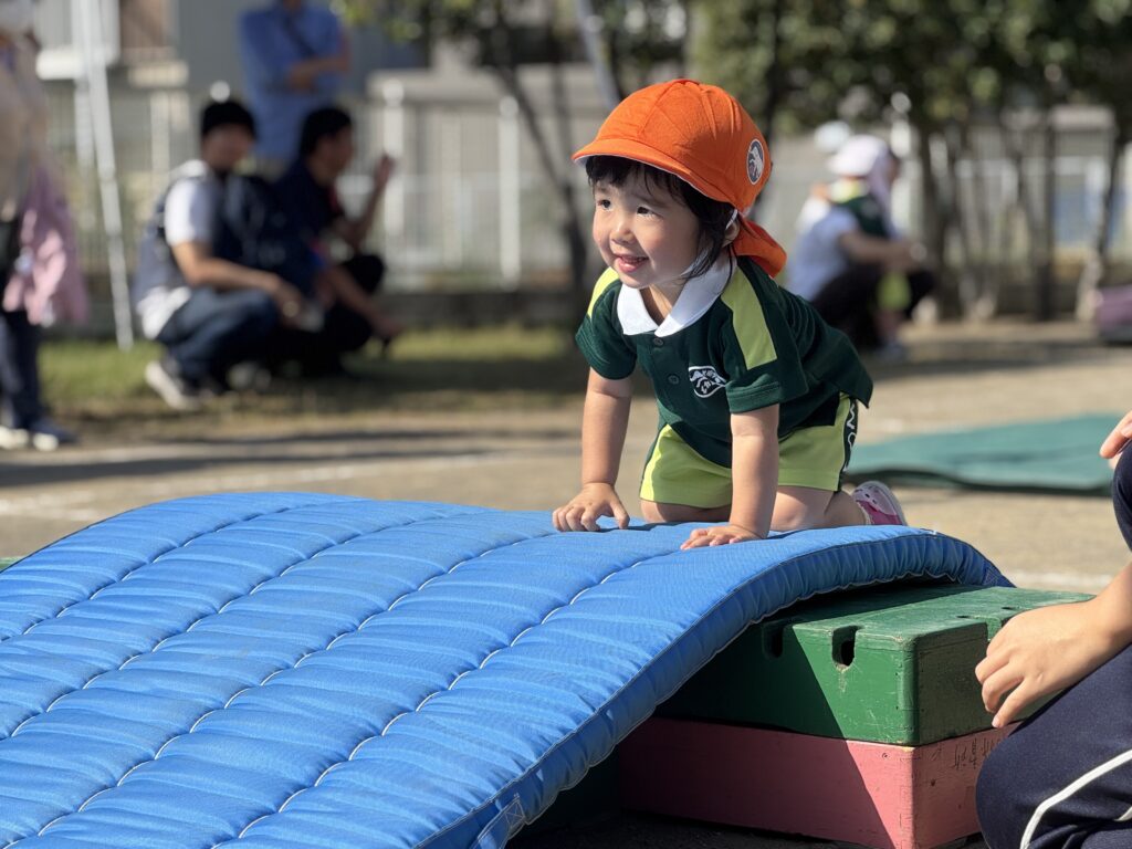 走ったりマットの上を登ったりくぐったりがんばりました。