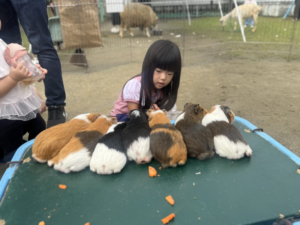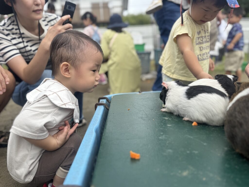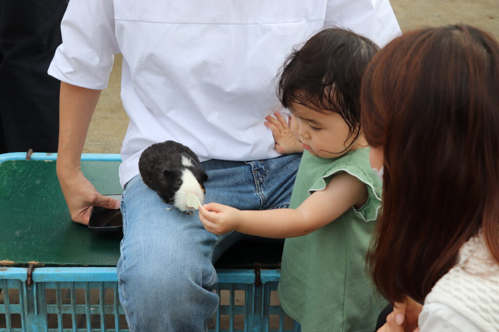 最初はおそるおそる近寄っていた子も、動物と触れ合ううちに少しずつ慣れ、餌をあげたりなでたりする姿もみられ、親子で貴重な体験ができました。