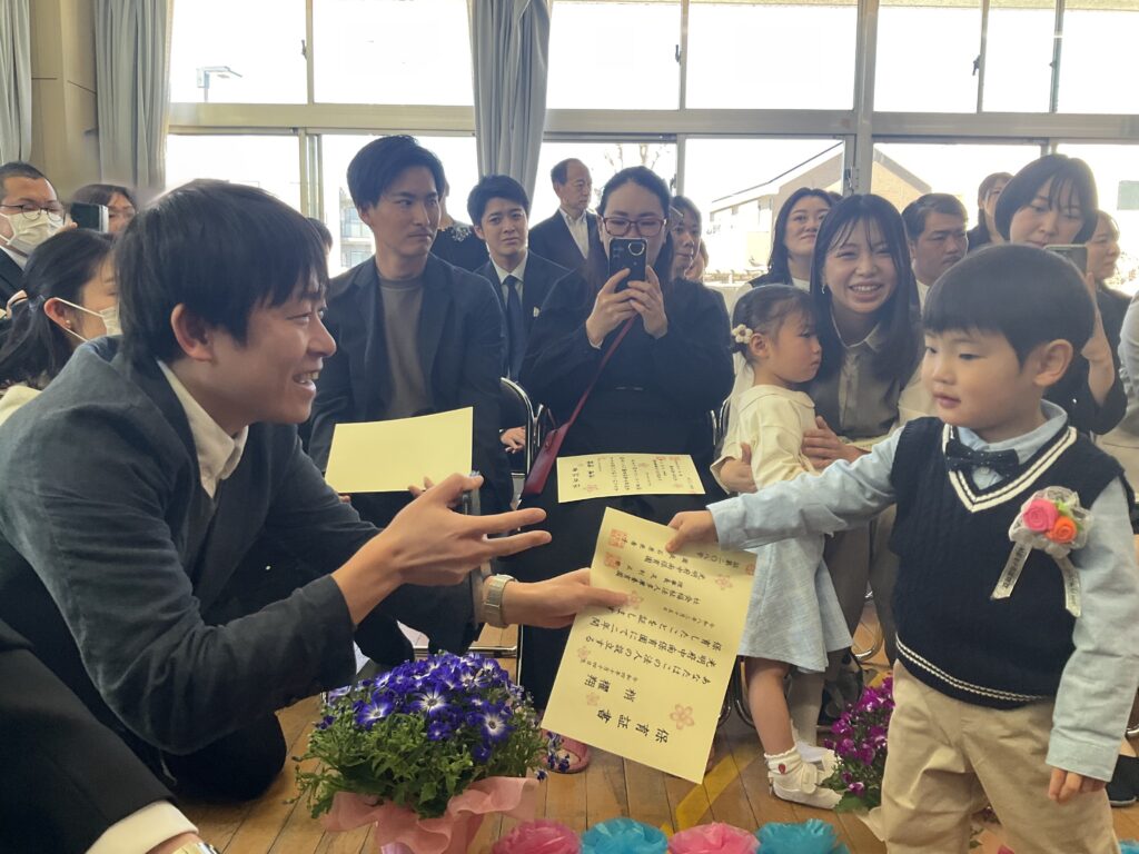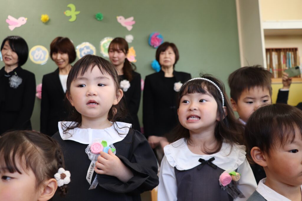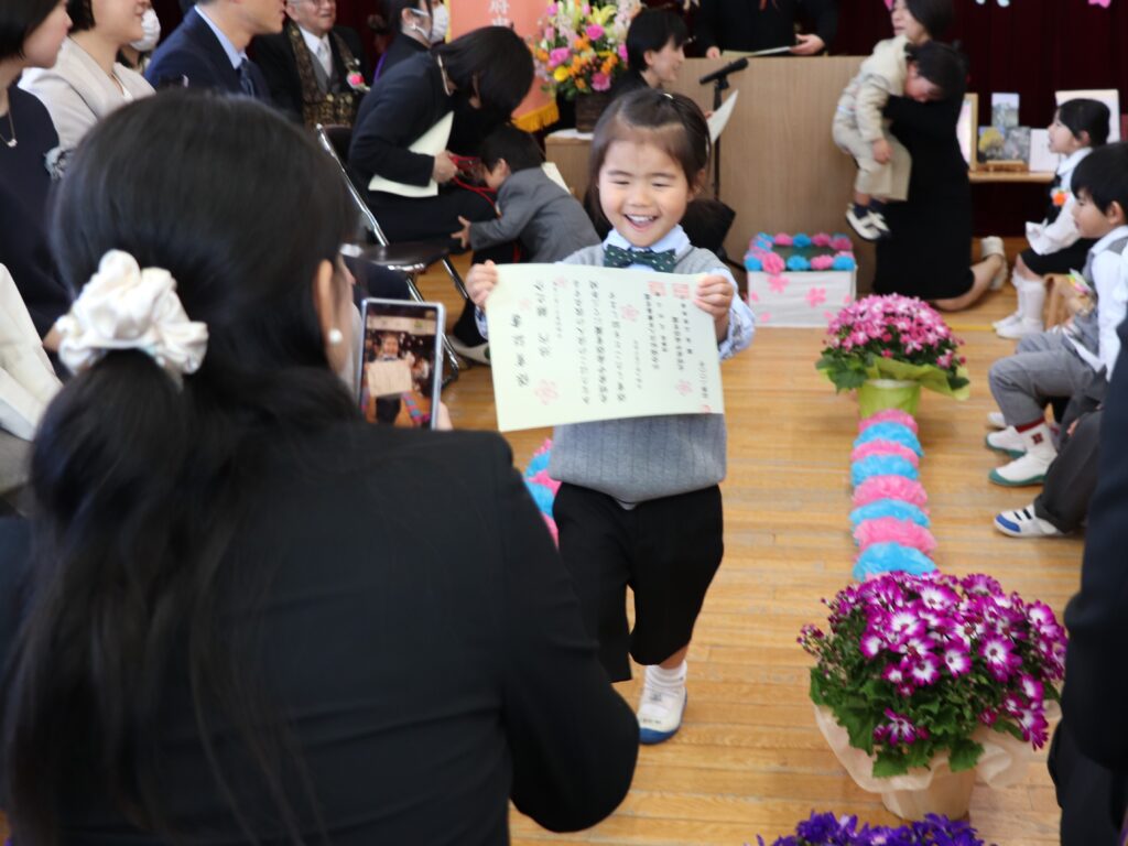 式中は笑ったり涙を見せたりと一人ひとり様々な姿が見られ、園歌を元気な声で歌うなど、終始あたたかな雰囲気に包まれた卒園式でした。