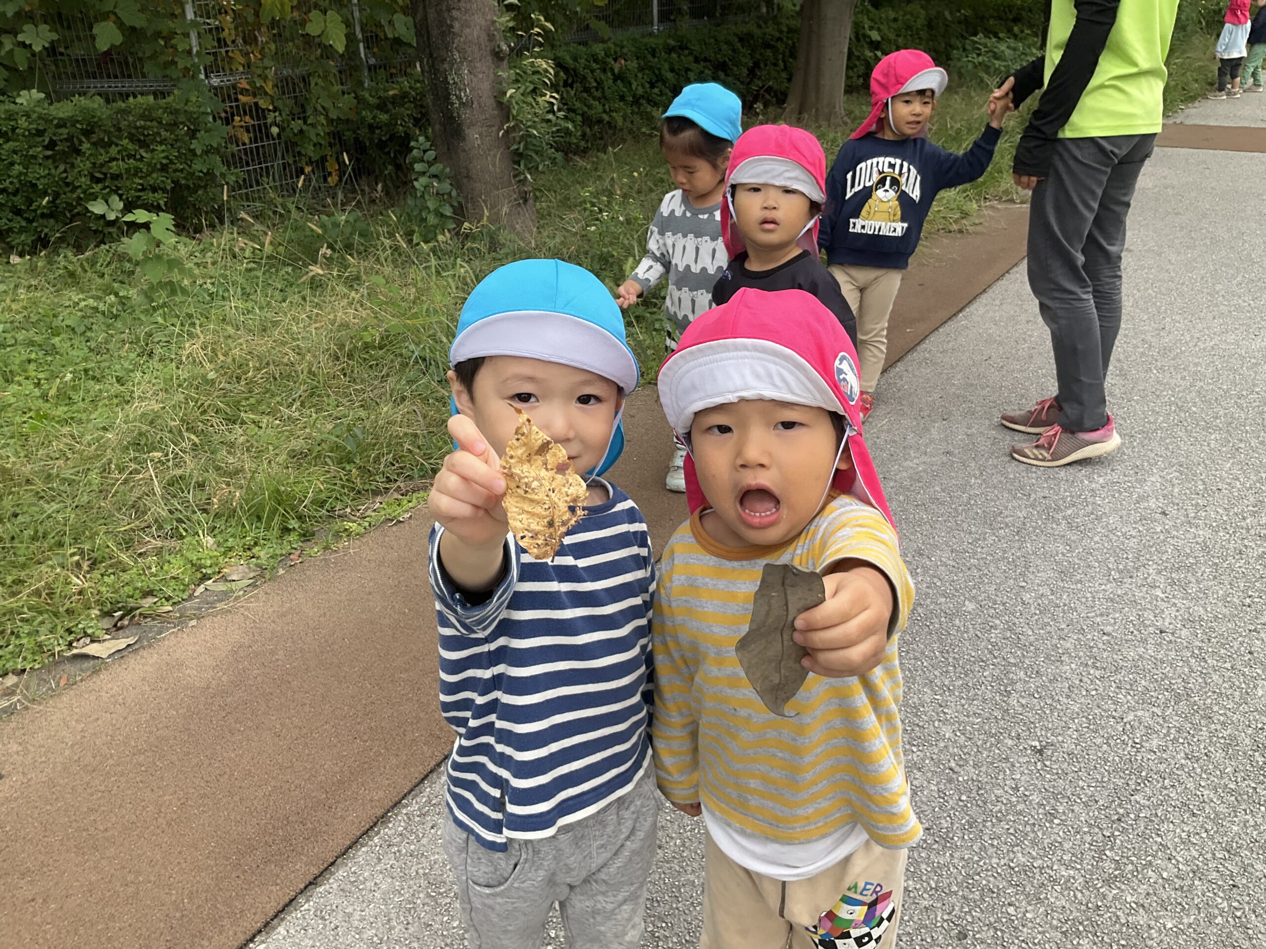 防災公園に行き、秋さがし!木の実や落ち葉をたくさん集めてきました。