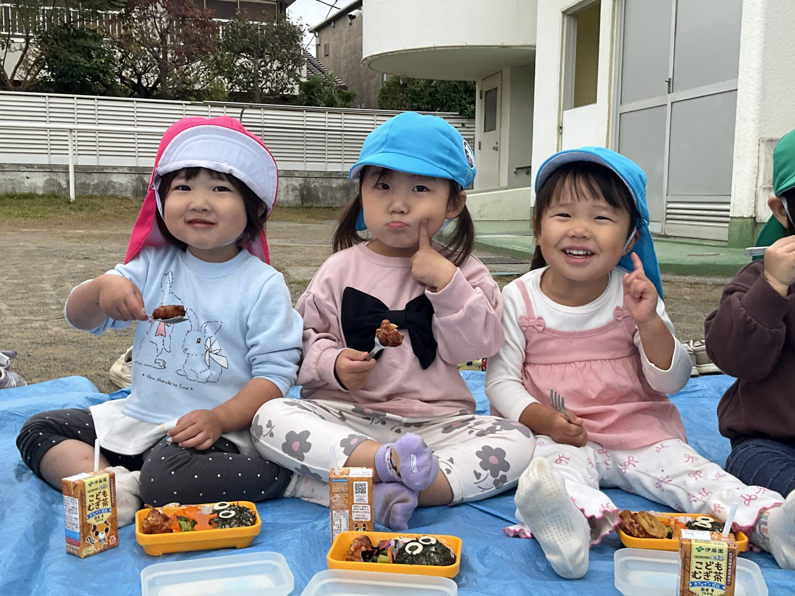子ども達の発見がいっぱいの楽しいお散歩でした。園に戻った後は、おいしいお弁当の時間!
