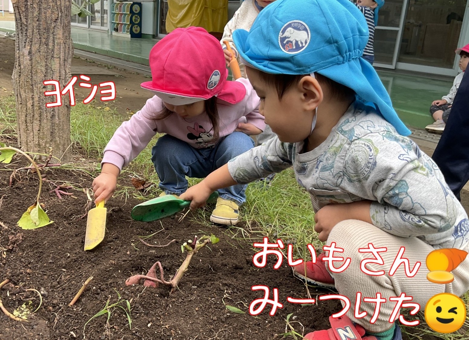 ☆28日:園舎前のミニ畑で収穫したさつま芋を調理室で