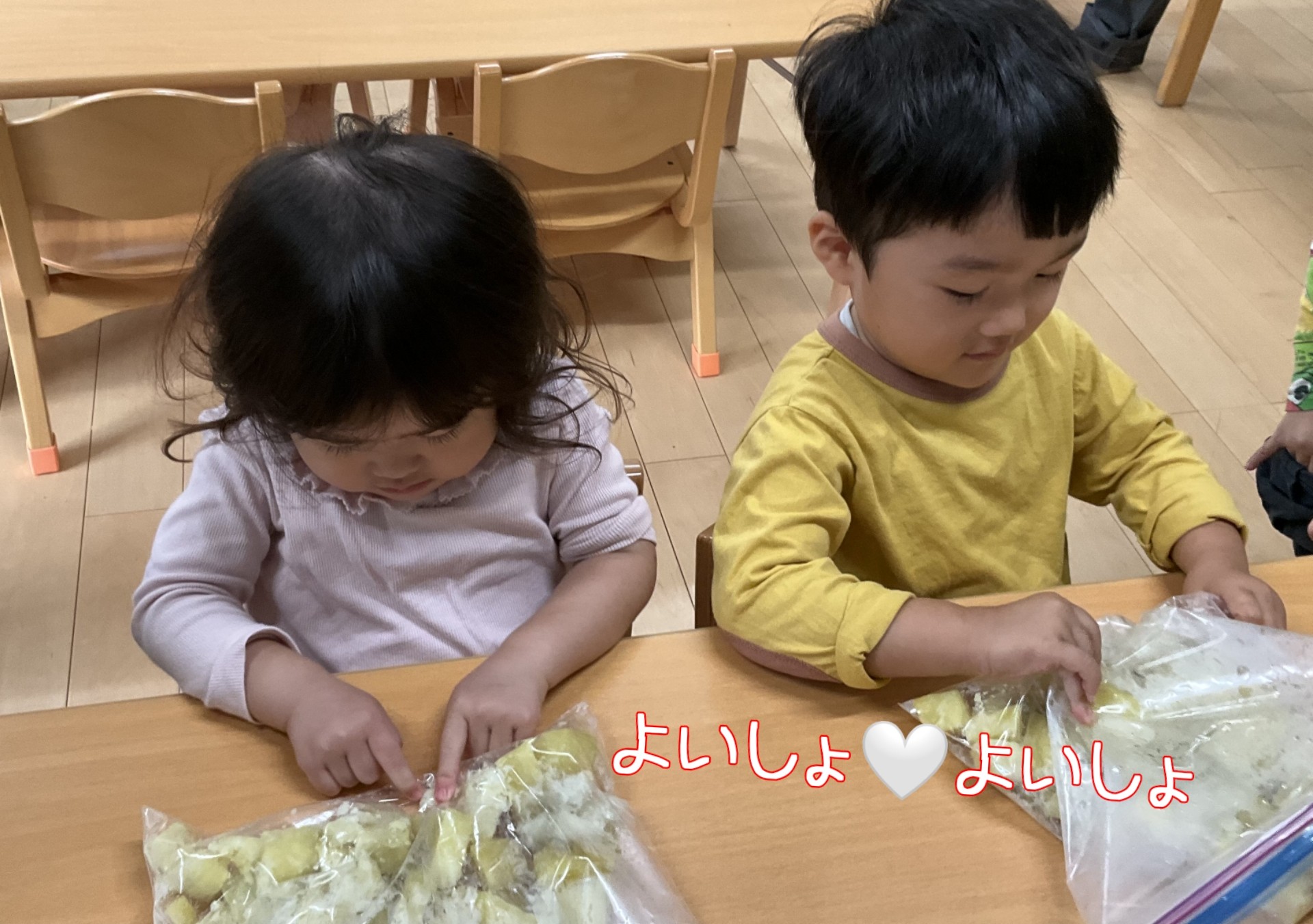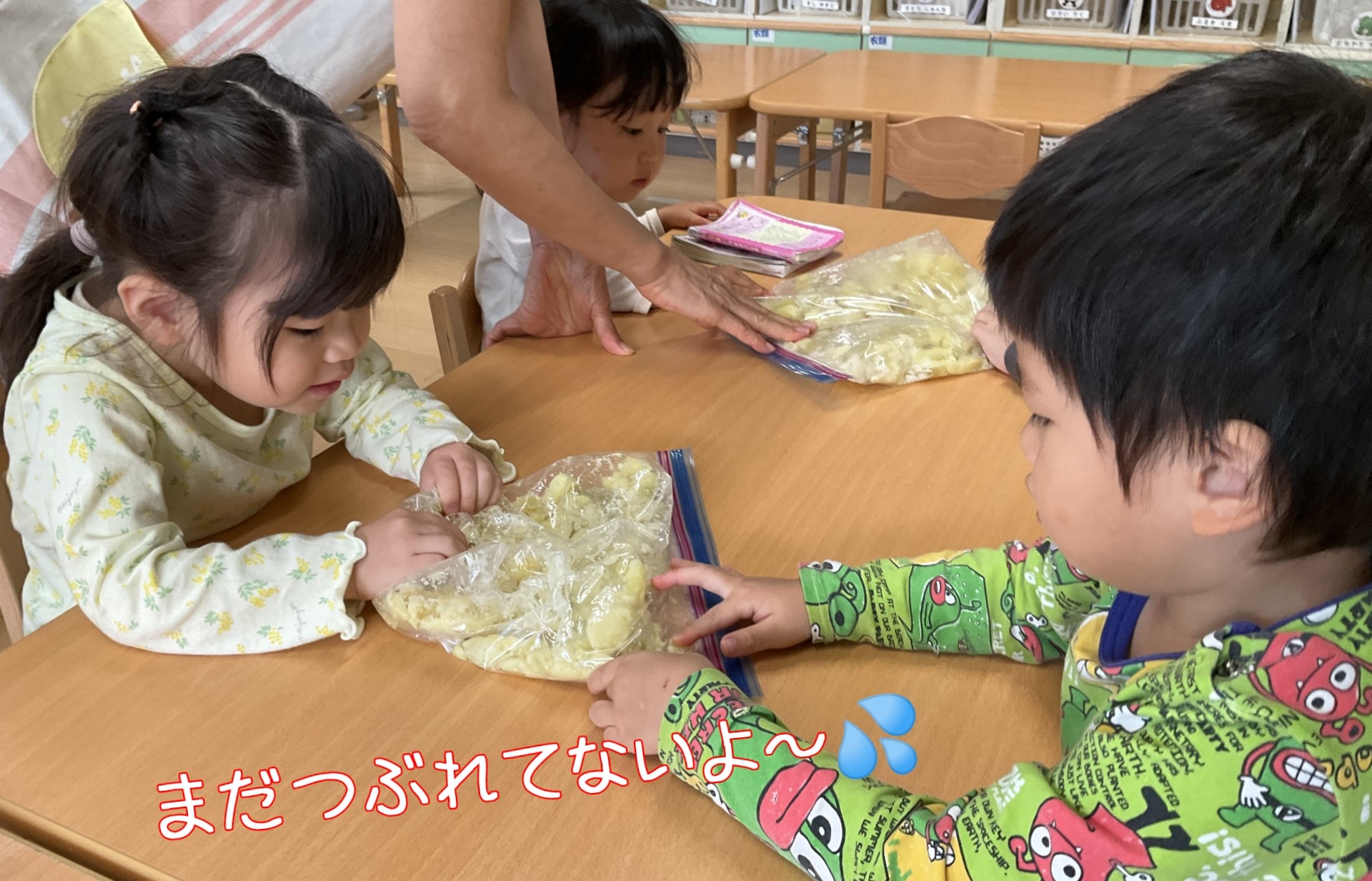 蒸かし、みんなで潰しました。おやつはさつまいも