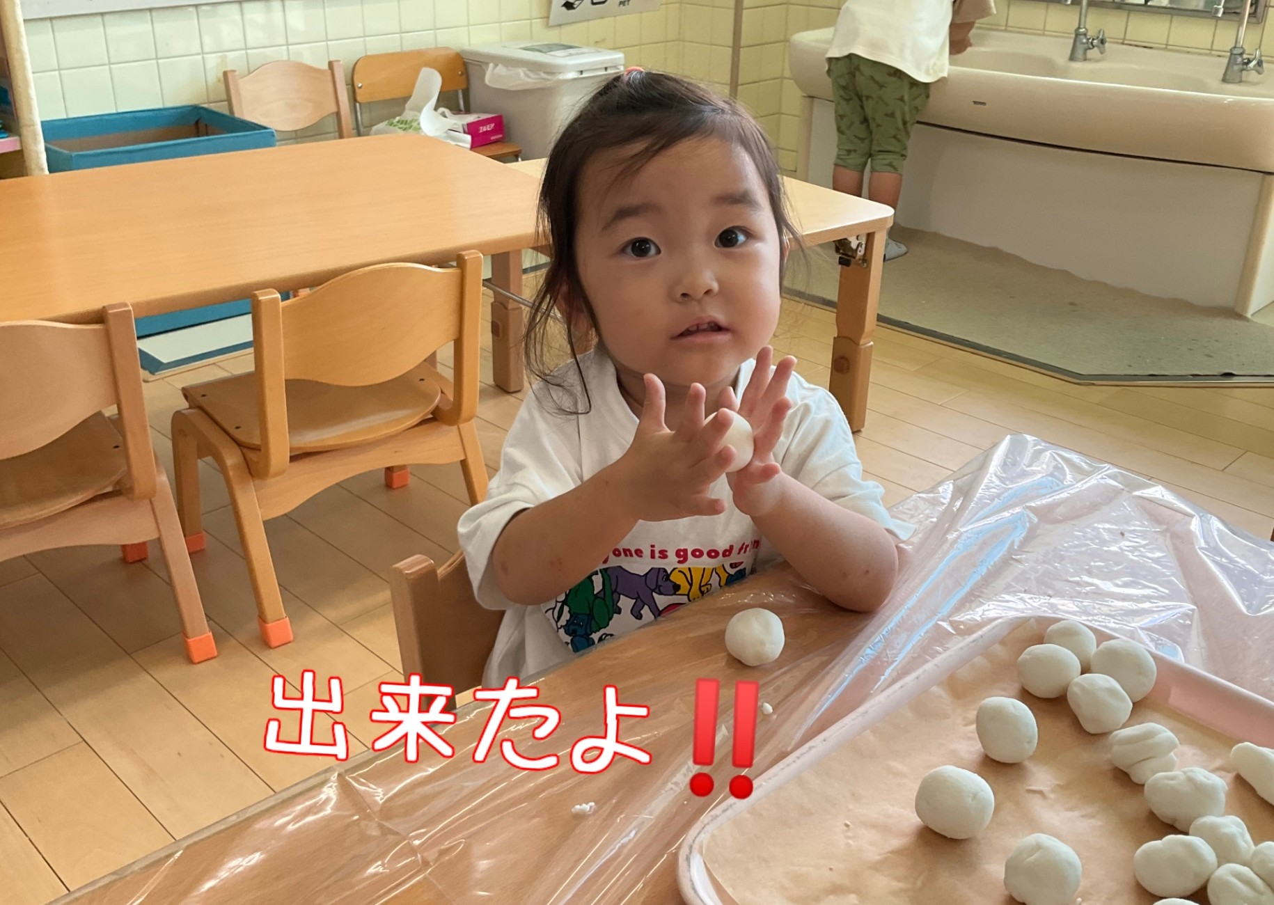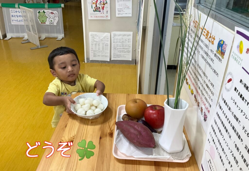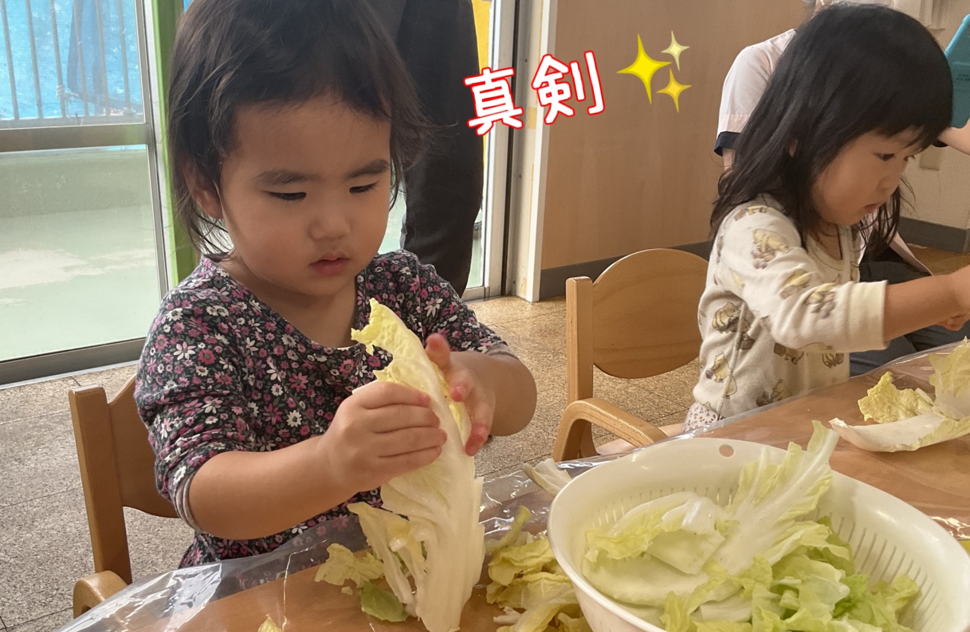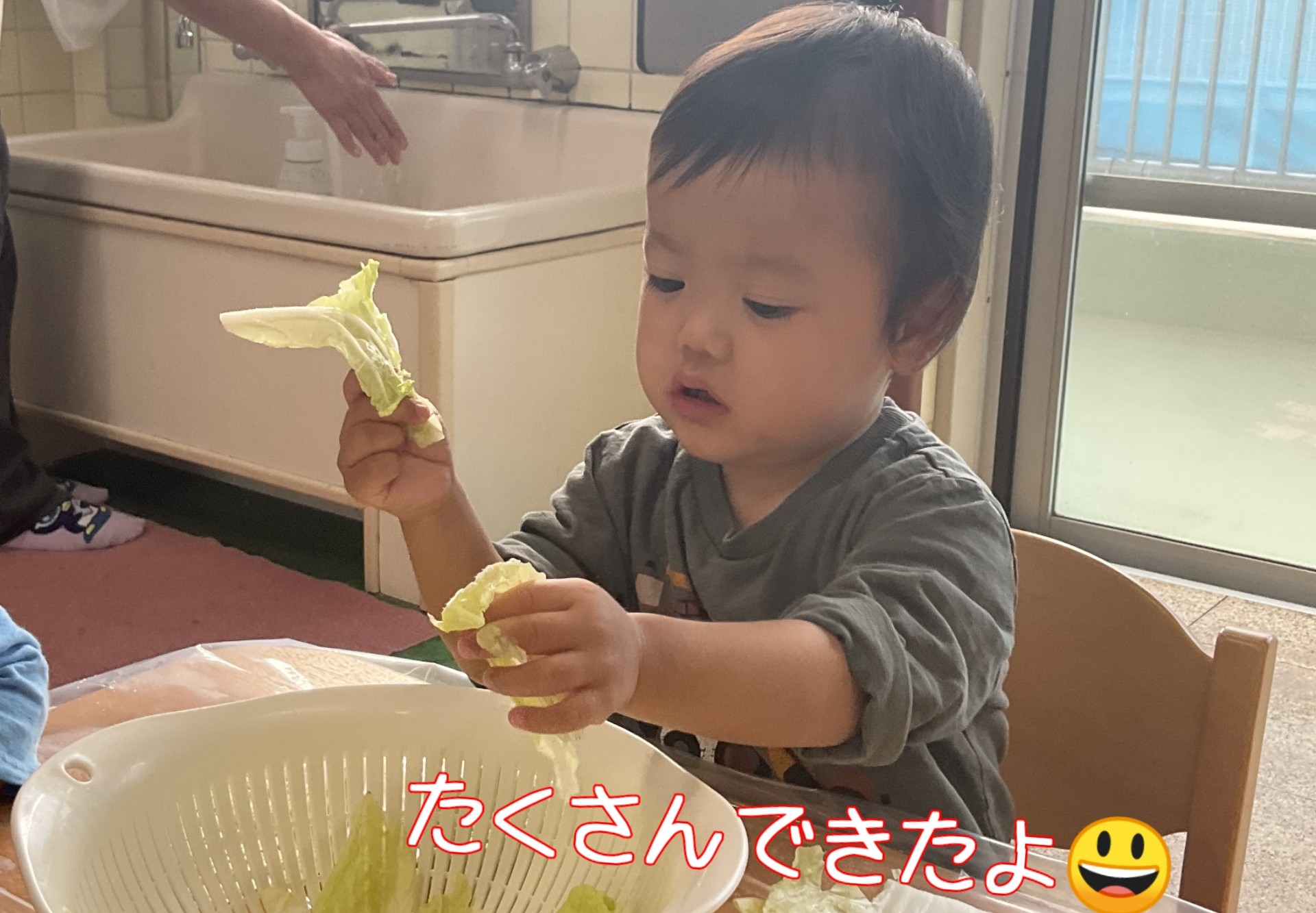菜ちぎりを実施。白い部分は少し硬かったよ